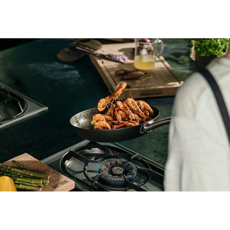 Ši keptuvė atlaiko aukštą temperatūrą, todėl puikiai tinka kepti daržoves, žuvį, mėsą, bulves ar blynus. Keptuvė greitai įkaista, o mėsai paruošti prireiks mažai riebalų. Keptuvė yra tvirta ir tinka bet kokiam šilumos šaltiniui. Kepimas indukciniu būdu ar orkaitėje šiai keptuvėje nėra problema.