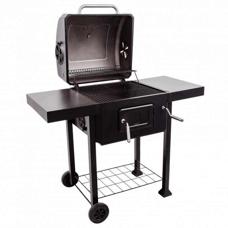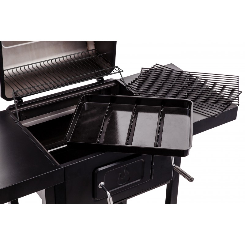 Naujoji kepimo technologija “Char-Broil” anglių kepsninėse naudoja patentuotą padėklą, kuris leidžia lengvai kontroliuoti dugno aukštį, o tuo pačiu ir kepimo temperatūrą.