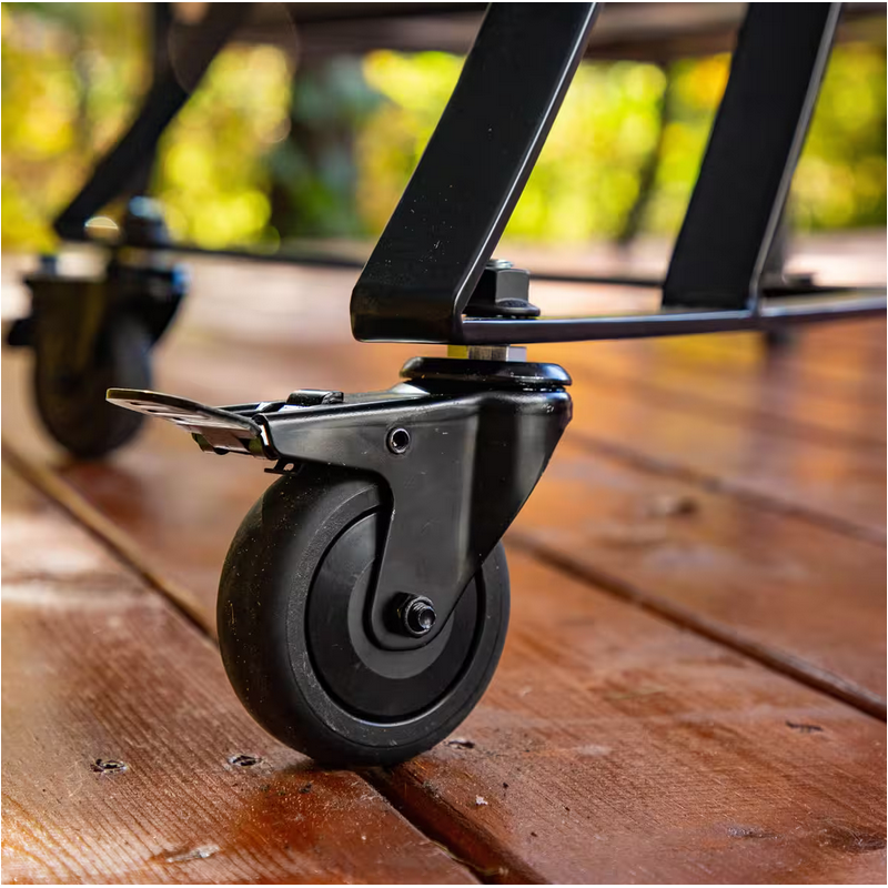 Lentynos suteikia vietos lėkštėms, prieskoniams ir įrankiams, o sulankstymas praverčia laikant kompaktiškiau. Ratukai padeda lengviau perstumti grilį terasoje ar kieme.