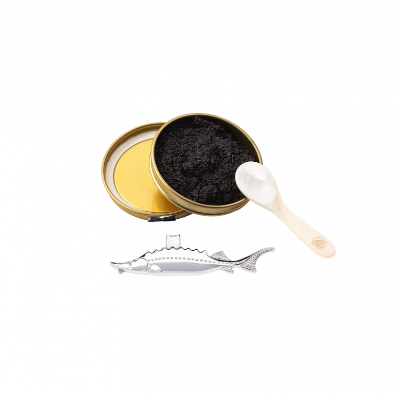 • Ikrų šaukštelį, pagamintą iš jūros kriauklių – estetiškas pasirinkimas prabangiam patiekimui.
