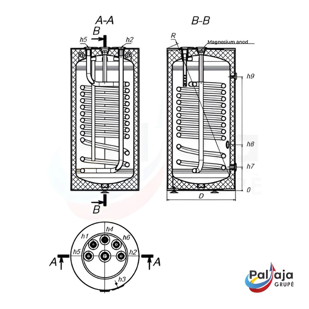 BT vandens šildytuvai gaminami nuo 120 iki 500 litrų su vientisa PU izoliacija, nuo 750 iki 2000 litrų – su nuimama izoliacija.