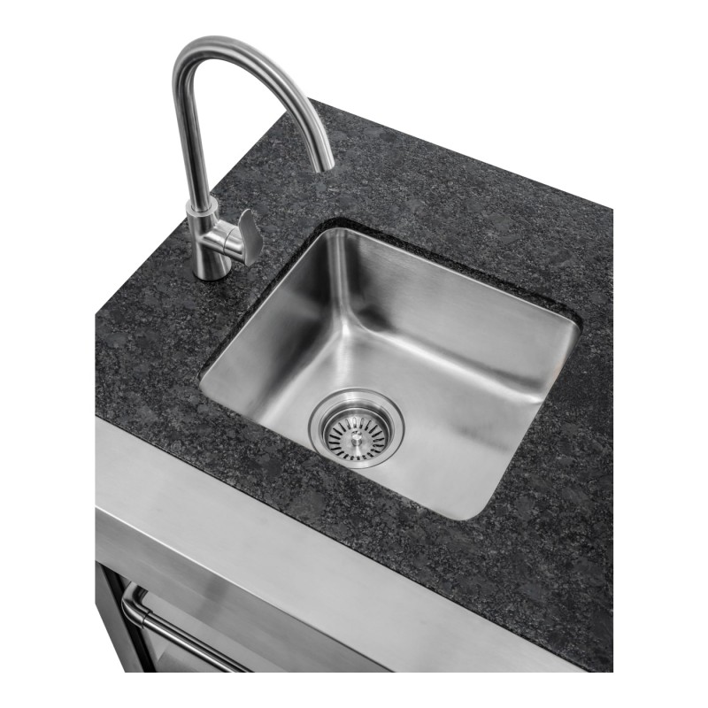 • Pilnai funkcionuojanti kriauklė su čiaupu – patogu greitai nuplauti indus ar salotas. Atkreipkite dėmesį: ją reikės pajungti prie vandentiekio.