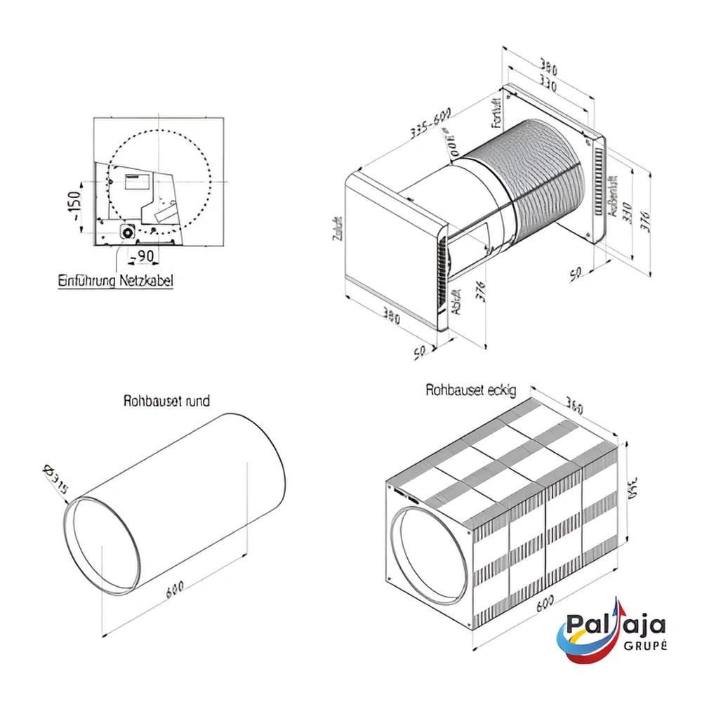 | Reikalinga anga sienoje | Ø 325 mm |