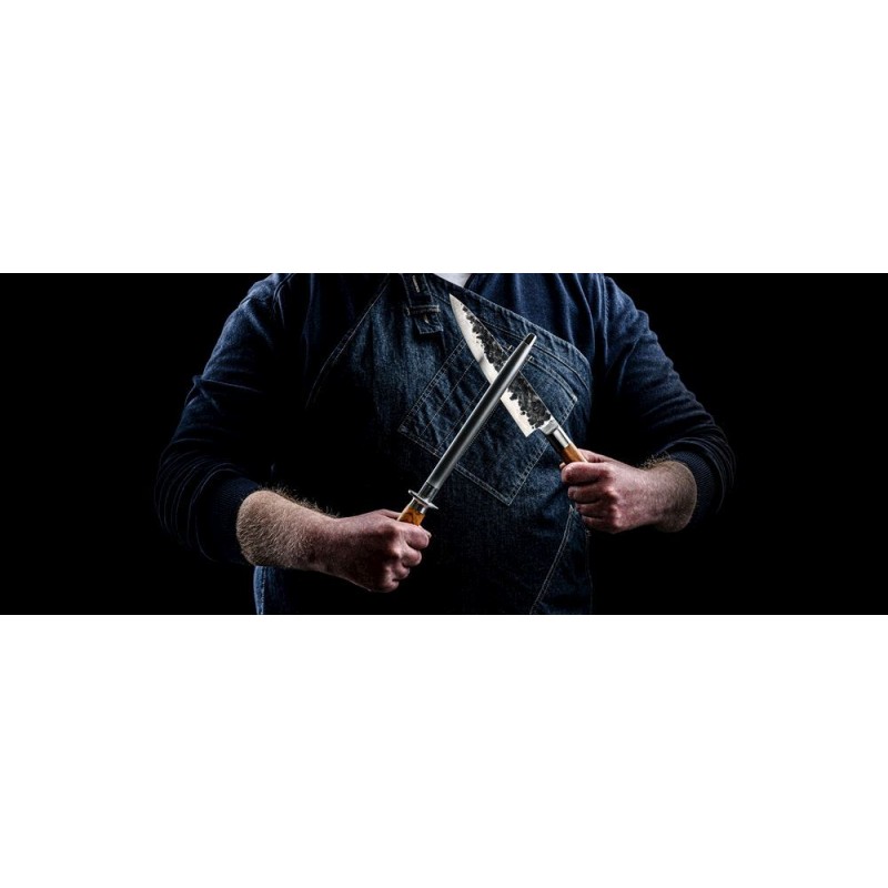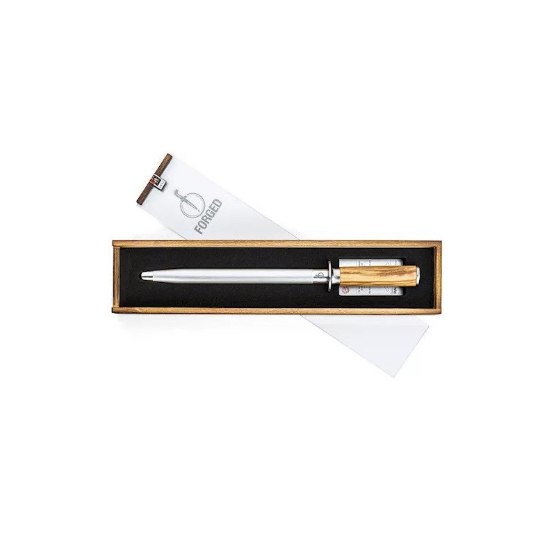 Galąstuvas neaštrina peilio, bet išlygina ašmens kraštą ir padeda išlaikyti peilio aštrumą. Naudojant svarbu išlaikyti peilį tokiu pat kampu. Pateiktas prabangioje dėžutėje.
