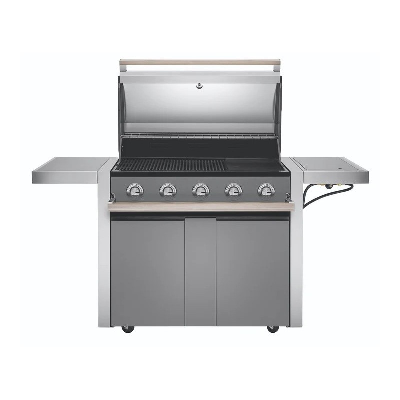 Beefeater Discovery 1500 Series – 5 Burner BBQ & Side Burner Trolley yra puikus pasirinkimas tiems, kurie vertina aukštą kokybę, funkcionalumą ir stilingą dizainą. Šis grilis suteikia viską, ko reikia puikiam grilio vakarui, nuo patogaus naudojimo iki lengvo valymo ir priežiūros.