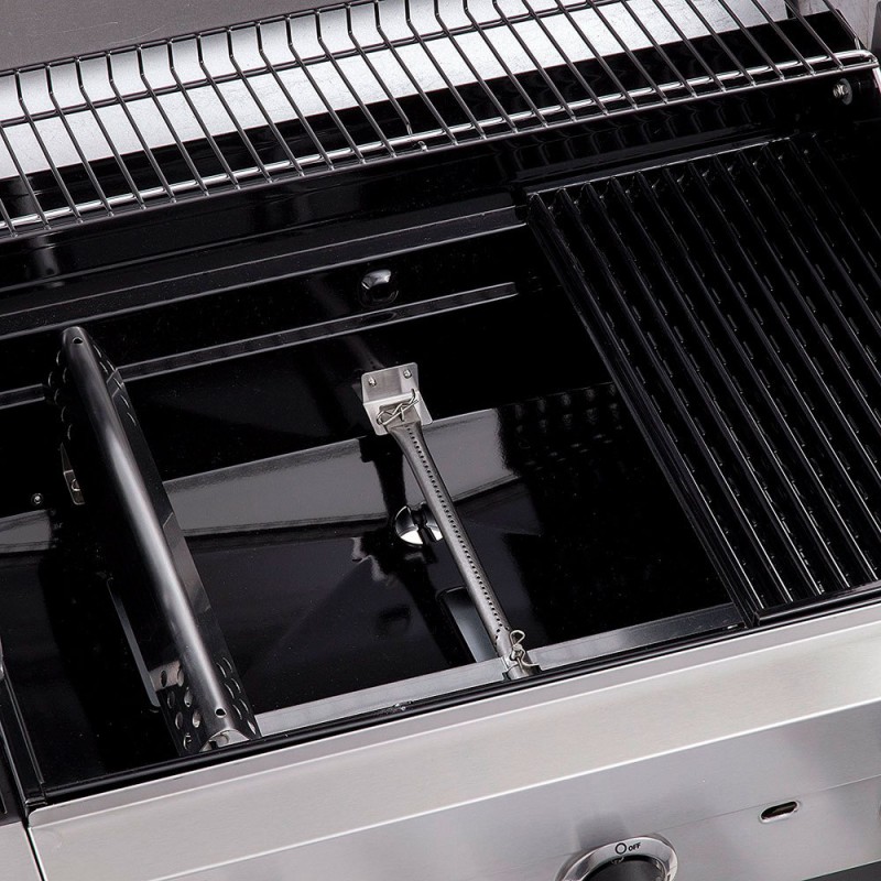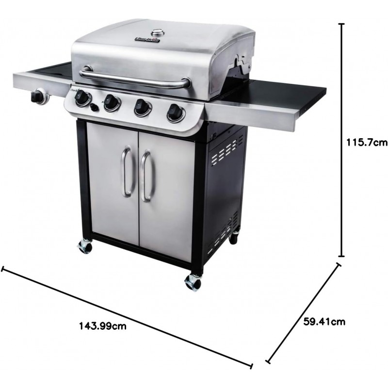 Char-Broil Convective 440S – tai modernus, iš nerūdijančio plieno pagamintas dujinis grilis, sukurtas patogiam kasdieniam kepimui ir didesnėms šeimos ar draugų vakarienėms. Dėl didelio kepimo ploto ir 4 degiklių sistemos vienu metu paruošite kelis patiekalus, o šoninis degiklis leis patogiai virti padažus ar garnyrus šalia grilio.