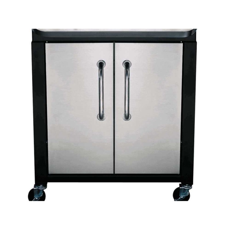 Grilis turi uždarą spintelę su durelėmis, kur patogu laikyti įrankius ar kitus priedus. Spintelėje telpa 5kg dujų balionas. Dvigubas nerūdijančio plieno dangtis padeda stabiliau išlaikyti temperatūrą, o integruotas termometras leidžia stebėti kaitrą neatidarant dangčio.