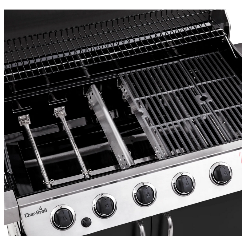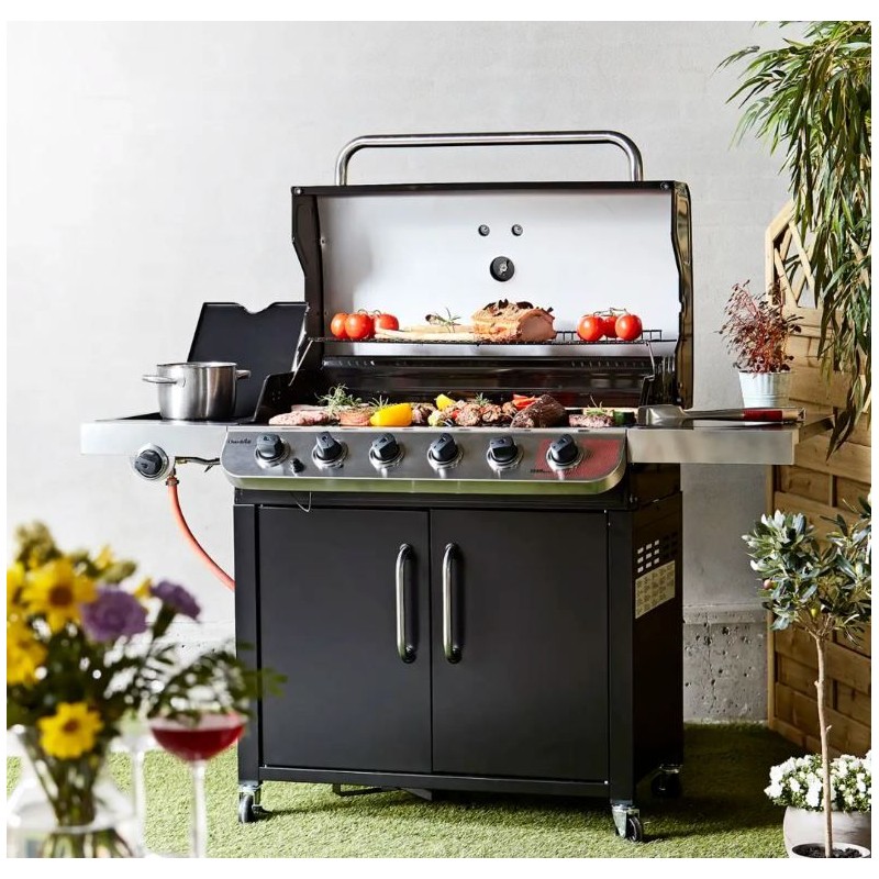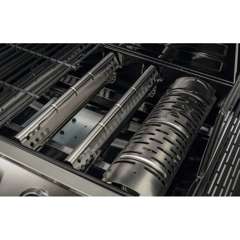 • Šeši nerūdijančio plieno degikliai: Kiekvienas degiklis valdomas atskirai, todėl galite sukurti net kelias skirtingas temperatūros zonas vienu metu. Vartotojui tai leidžia vienoje pusėje skrudinti mėsą aukštoje temperatūroje, o kitoje – lėtai kepti daržoves.