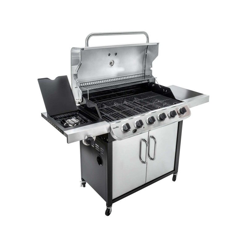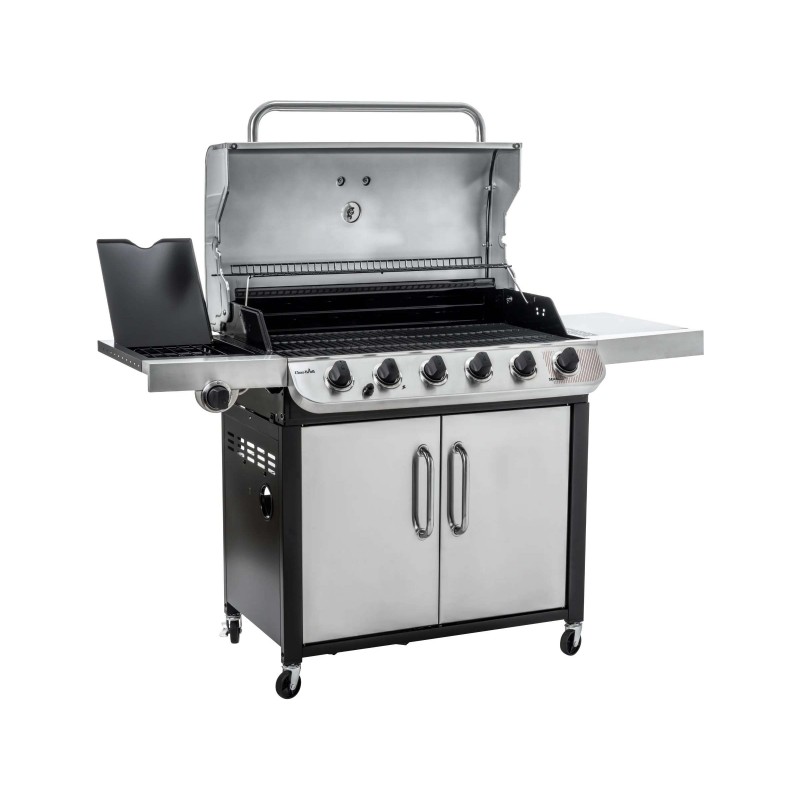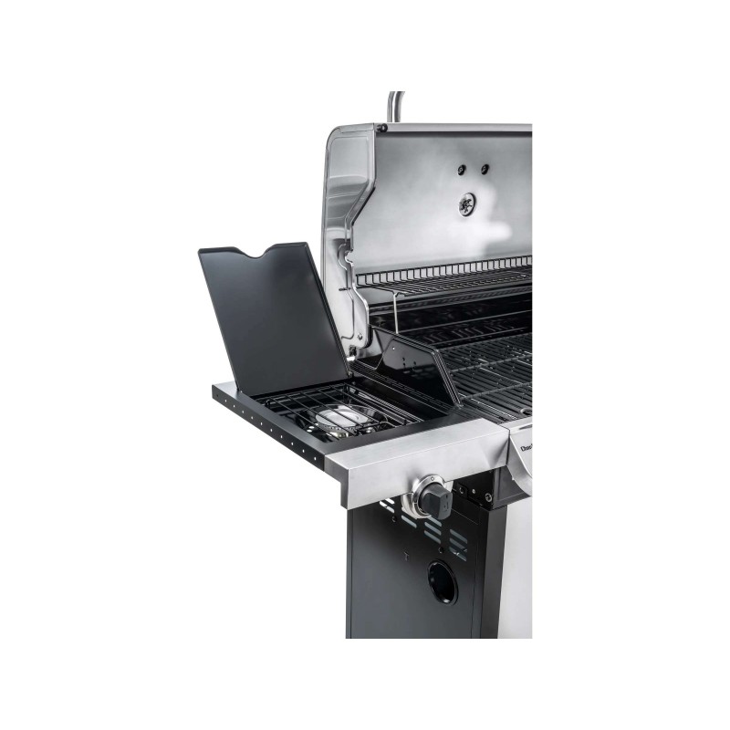 Char-Broil dujinis grilis išsiskiria itin dideliu 89 x 47cm kepimo plotu, todėl vienu metu galite gaminti maistą iki 12 žmonių. Dėl galingų degiklių, integruotos SearZone zonos ir papildomo šoninio degiklio – tai visavertė lauko virtuvė viename įrenginyje.