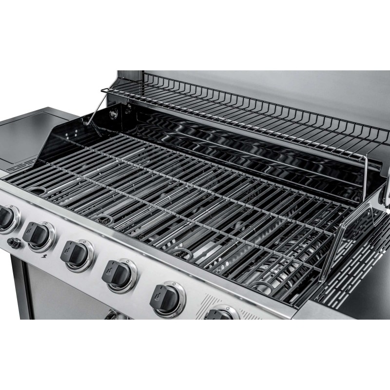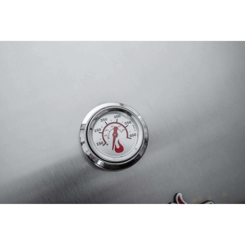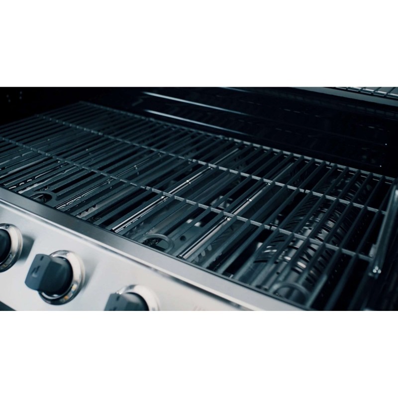 5 nerūdijančio plieno degikliai (15,4 kW) ir papildomas šoninis degiklis užtikrina greitą įkaitimą bei stabilią temperatūrą visame kepimo plote.