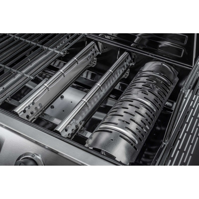 Papildoma SearZone zona (4,68 kW) pasiekia itin aukštą temperatūrą per labai trumpą laiką – idealiai tinka apskrudinti kepsnius neprarandant jų sultingumo. Degiklių apsaugos skydeliai iš nerūdijančio plieno saugo nuo lašančių riebalų ir padeda tolygiai paskirstyti karštį.