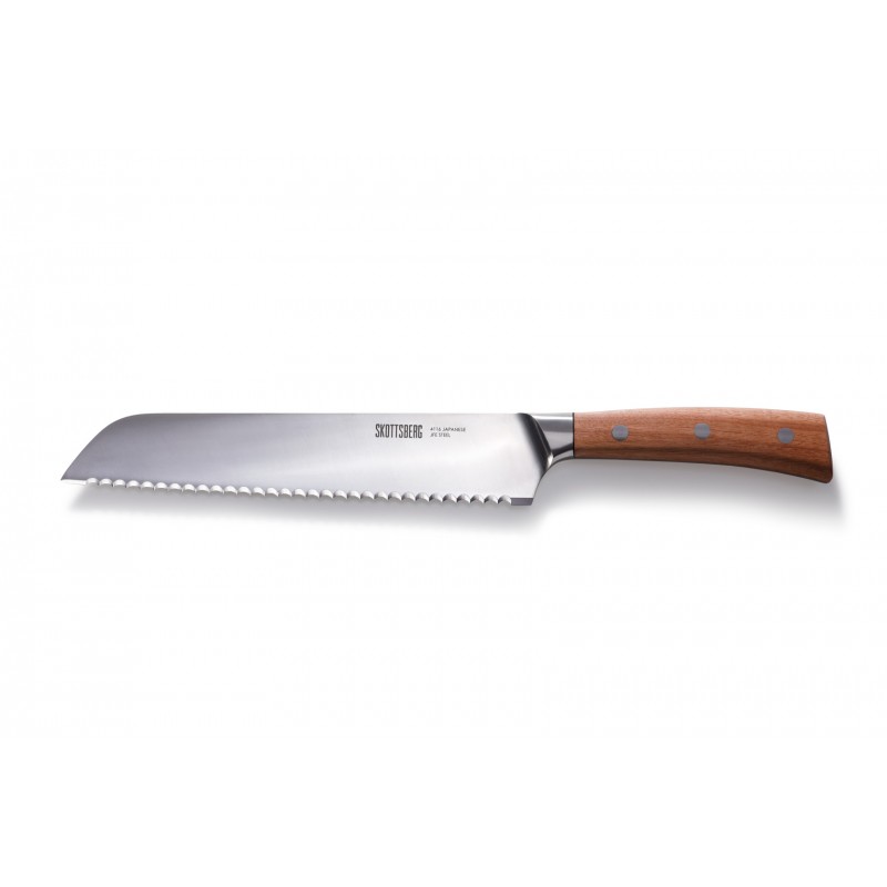 Skottsberg duonos peilis sukurtas tiems, kurie vertina kokybę. Ašmenys pagaminti iš aukštos kokybės japoniško 4116 JFE plieno, kuris išlieka aštrus ir tvirtas net intensyvaus naudojimo metu. Dantyta geležtė padeda lengvai įveikti kietą kepinio plutą, nepažeidžiant minkštos jo struktūros.