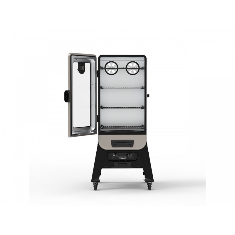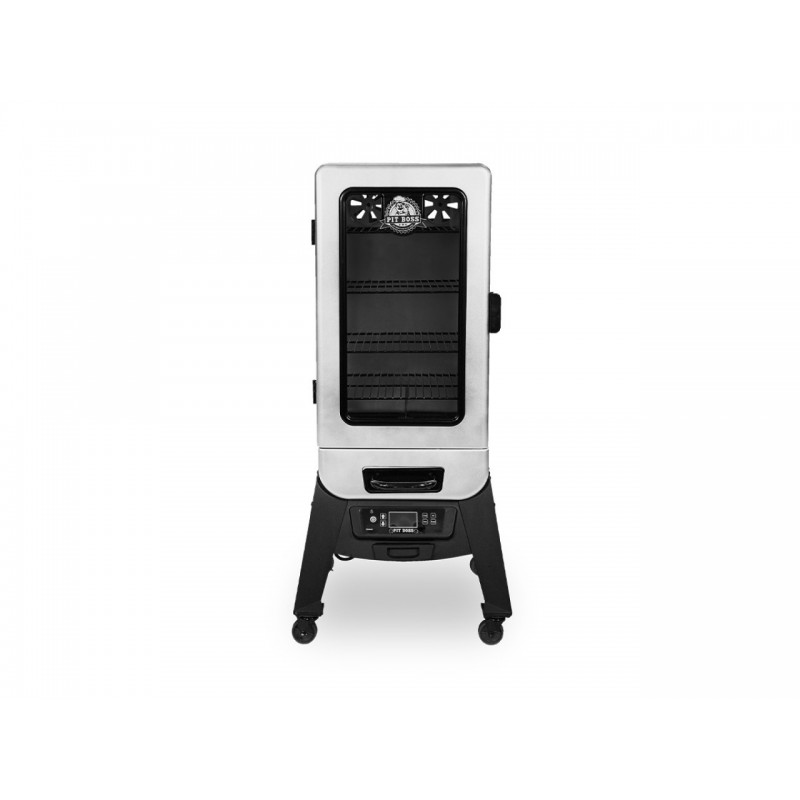 Pit Boss PBV3D1 – tai patikima elektrinė vertikali rūkykla, skirta tiems, kurie nori klasikinio dūmo skonio su tiksliu valdymu ir patogiu kasdieniu naudojimu. 4424 cm² kepimo plotas, 4 lentynos, 38–176 °C temperatūrų ribos, mėsos zondas ir izoliacija leidžia ruošti įvairius patiekalus – nuo lėto rūkymo iki intensyvesnio kepimo aukštos temperatūros režimu.