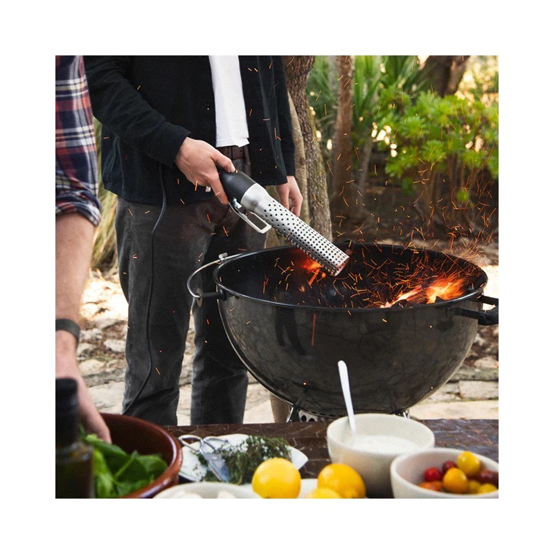 Greitai uždekite ugnį:  Elektrinio degiklio dėka jums nereikia laukti ilgai, kol mediena ar anglis užsidegs. Loof Air Lighter 1 suteikia ugnį vos per kelias sekundes.
