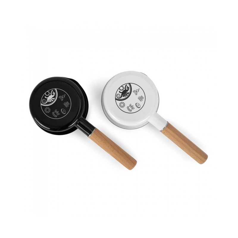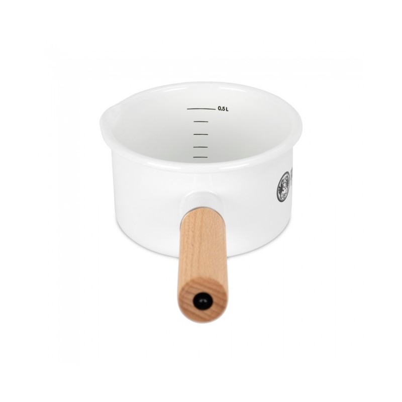 Tvirti emaliuoti indai yra idealus palydovas dėl savo mažo svorio. Medinė rankena veikia kaip natūrali apsauga nuo karščio.