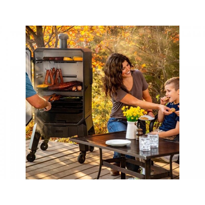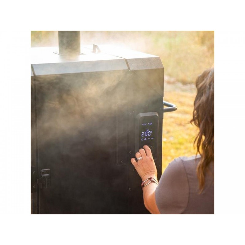 Pit Boss PRO V4P – tai vertikali granulinė rūkykla, sukurta tiems, kurie nori stabilaus rūkymo rezultato be sudėtingo proceso. Ji naudoja kietmedžio granules, o temperatūrą palaiko skaitmeninis valdiklis, todėl rūkymas tampa nuspėjamas ir lengviau valdomas.