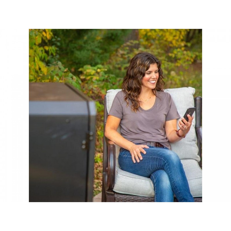 PID sistema reguliuoja granulių padavimą ir palaiko nustatytą temperatūrą stabiliau. Papildomai galima stebėti ir valdyti nustatymus telefonu per Pit Boss SmokeiT programėlę, todėl patogu prižiūrėti procesą būnant namuose ar kieme užsiimant kitais darbais.