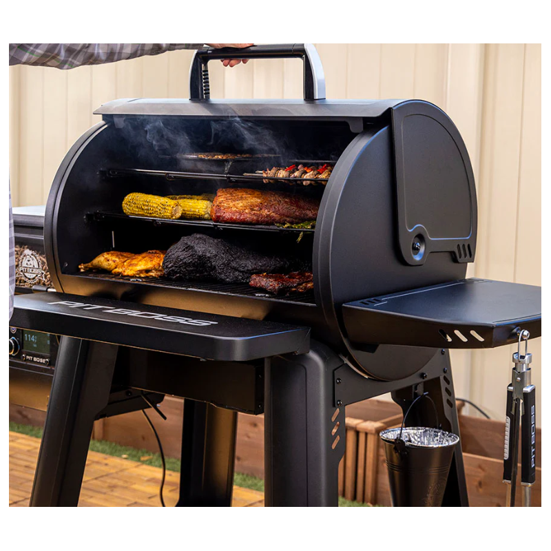 Pit Boss Competition Series 1250 – tai didelio našumo granulinis grilis, sukurtas tiems, kurie nori rimtos talpos, stabilios temperatūros ir patogaus valdymo telefonu. Tai modelis, kuriame akcentas aiškus: daugiau vietos gaminti vienu metu, daugiau kontrolės ir tikras apskrudinimas, kai reikia ryškios plutos.