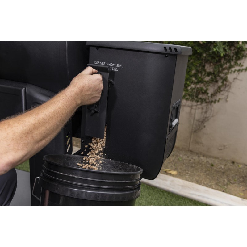 Šis granulinis grilis veikia labai paprastai: į bunkerį supilamos 100% kietmedžio granulės, o grilis automatiškai dozuoja jų kiekį, kad palaikytų pasirinktą temperatūrą. Jutiklinis valdiklis leidžia nustatyti kaitrą labai tiksliai, o programėlė padeda stebėti procesą ir mėsos temperatūras per zondus.