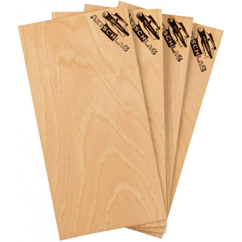 „Axtschlag vyšnios medžio lentutės skirtos ypač švelniai gaminti maistą su tam tikru dūmų ir medienos aromatu. Prieš naudojimą paprasčiausiai pamirkykite vandenyje apie 1 valandą, tada padėkite ant jos maistą ir padėkite lentą ant grotelių. Lentelių dūmą taip pat galima naudoti ir kokteiliams pagardinti.