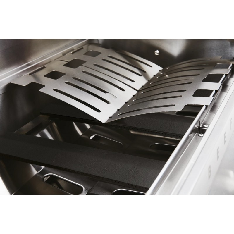 BeefEater 7000 Classic 4 degiklių įmontuojama kepsninė – tai aukščiausios kokybės lauko kepimo sprendimas, sujungiantis profesionalų našumą ir išskirtinį dizainą. Jos tvirta konstrukcija iš 304 klasės nerūdijančio plieno užtikrina ilgaamžiškumą, o galingi degikliai leidžia pasiekti aukštą temperatūrą greitai ir tolygiai. Integruotas stiklo langas leidžia stebėti kepimą neatidarant dangčio, taip išlaikant pastovią temperatūrą.