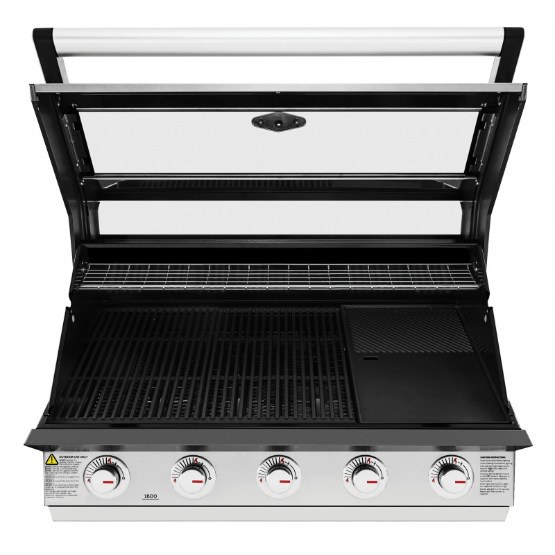 - Elegantiška išvaizda: 1600S serijos grilis išsiskiria moderniu, minimalistiniu dizainu, kuris puikiai tinka įmontuojamoms lauko virtuvėms.