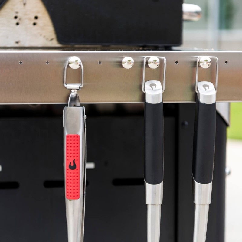 Dauguma Char-Broil grilių turi iš anksto paruoštas vietas Gear Trax kabliukams tvirtinti. Jų dėka galite suasmeninti kepimo vietą pagal save, pasinaudojant galimybe norimose vietose kabinti įrankius.