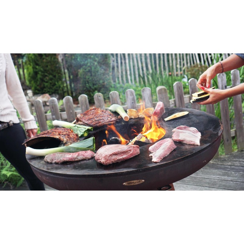 Dėl natūralaus ugnies šaltinio, šiluma paskirstoma tolygiai visame kepimo paviršiuje, o centrinė zona lieka karščiausia. Tai leidžia sukurti skirtingas temperatūros zonas – nuo sultingų kepsnių iki lėtai kepamų daržovių ar jūros gėrybių.