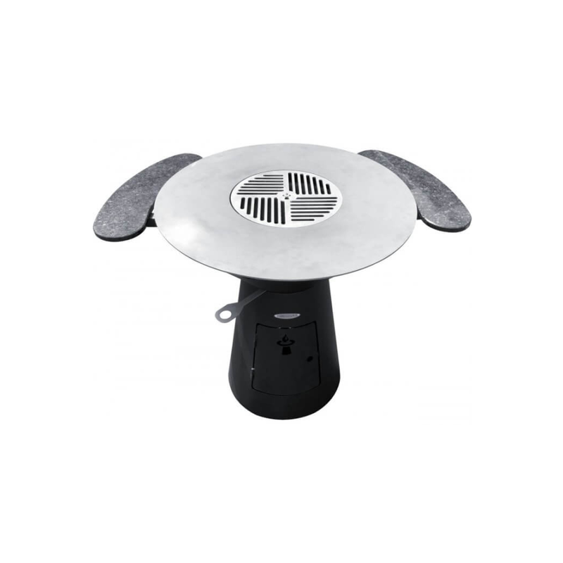 Grilio dubuo, plieninė grilio plokštė, pagrindas, 2 x granito lentynos, oro tiekmės reguliatorius, pelenų grotelės ir pelenų kibiras |