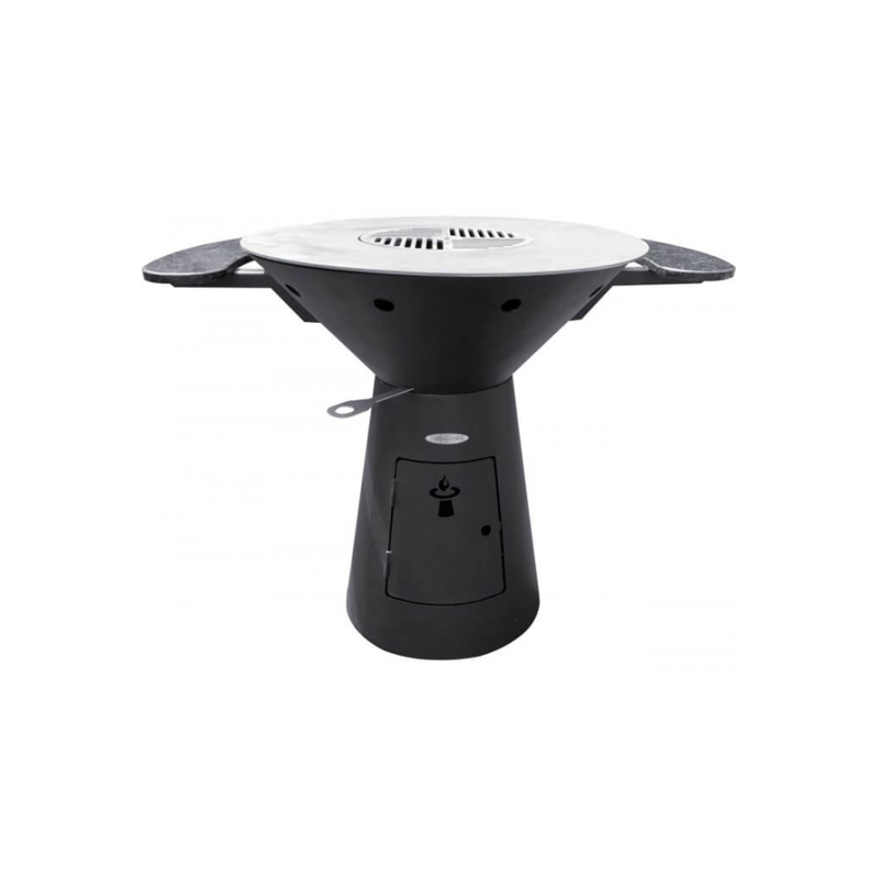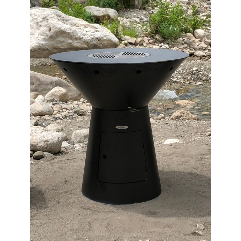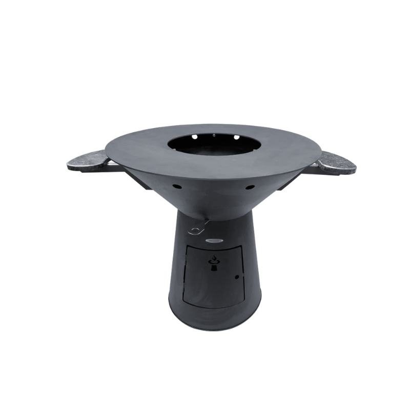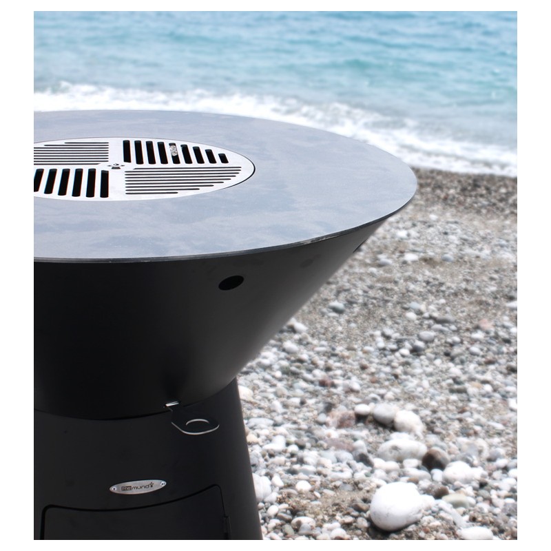 Nesenstantis dizainas ir išskirtinės linijos! „Phoenix“ yra juodos spalvos, tačiau pagal užsakymą galima užsisakyti ir rudos, rūdžių spalvos kepsninę. Komplektacijoje yra dvi nuimamos lentynos iš granito. Unikali kepsninė papuoš kiekvieną kiemą! “Remundi” lauko kepsnines/aukurus galima kūrenti tiek klasikinėmis malkomis, tiek anglimis. Šiluma kaupiasi po griliaus plokšte, kuri yra sušildoma iki maždaug 300°C. Dėl ypatingos geometrijos, šiluma tolygiai pasiskirsto. „Remundi” – vienintelis gamintojas, kuris į savo ugniakurą montuoja oro tiekmės reguliatorių, kuris pagamintas iš 100% nerūdijančio plieno. Šią sudedamąją dalį galima valdyti ir reguliuoti su tam pritaikyta patogia rankena. Kepsninės/aukurai „Remundi” pasižymi lengvu pelenų valymu. Šis novatoriškas produktas gaminamas Vokietijoje ir jį sudaro tik aukščiausios kokybės rafinuotas plienas.