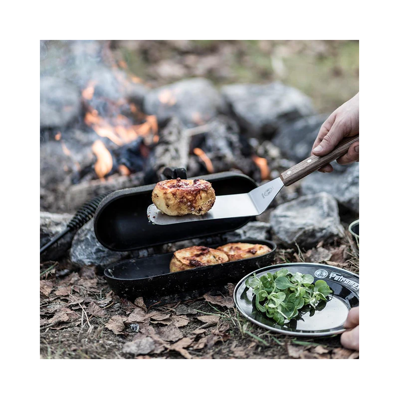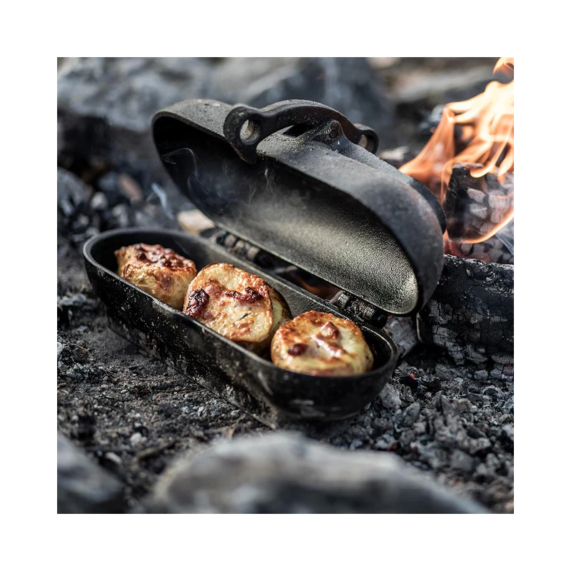 Bulvių Kepimo Indas puikiai tinka ruošti patiekalus prie atviros ugnies arba ant grotelių, nes jis optimaliai paskirsto šilumą. Be to, apvalus dizainas sustiprina bulvių kepimo poveikį. Puikiai iškeptos bulvės, tarkuotos saldžiųjų bulvių skiltelės ar pikantiški daržovių variantai, pavyzdžiui, paprikos ar baklažanai, kepant žarijose įgauna gardų kepimo skonį.