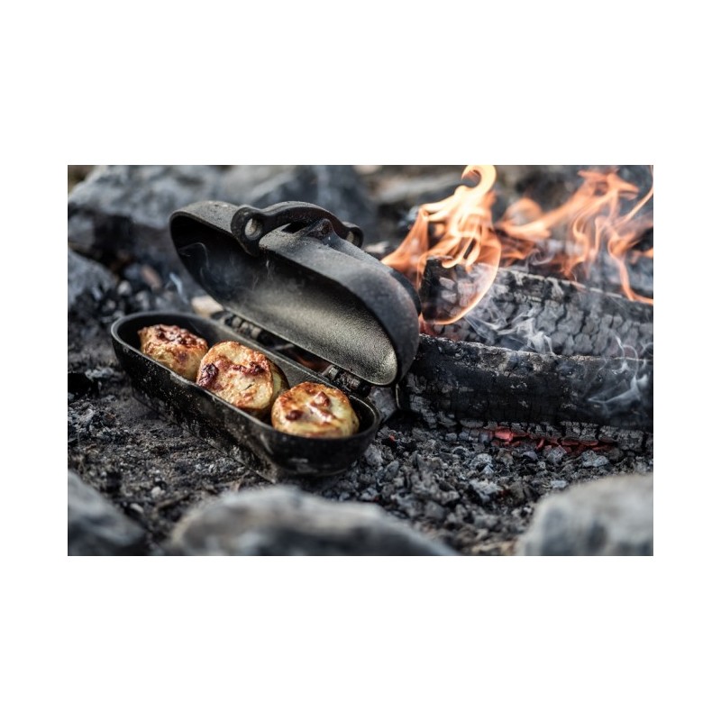 Bulvių Kepimo Indas puikiai tinka ruošti patiekalus prie atviros ugnies arba ant grotelių, nes jis optimaliai paskirsto šilumą. Be to, apvalus dizainas sustiprina bulvių kepimo poveikį. Puikiai iškeptos bulvės, tarkuotos saldžiųjų bulvių skiltelės ar pikantiški daržovių variantai, pavyzdžiui, paprikos ar baklažanai, kepant žarijose įgauna gardų kepimo skonį.