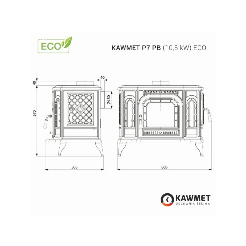 KAWMET P7 PB – tai patikima, iš aukštos kokybės ketaus krosnelė, sukurta efektyviam ir ekonomiškam šildymui. Šis modelis išsiskiria ne tik tvirta konstrukcija, bet ir pažangia dvigubo degimo sistema, kuri užtikrina švaresnį, galingesnį ir taupesnį malkų deginimą.