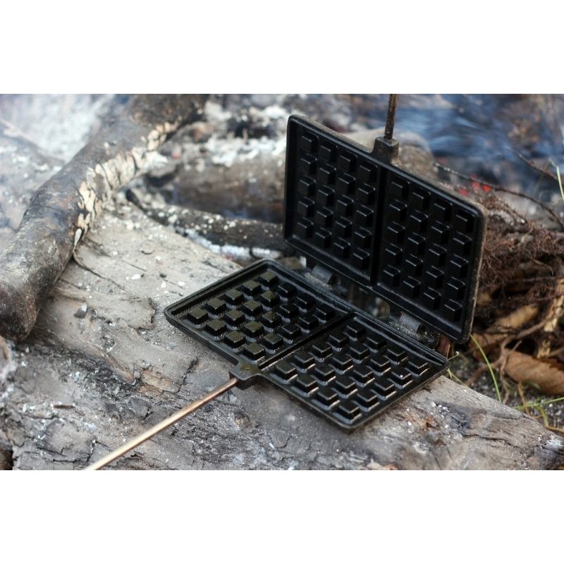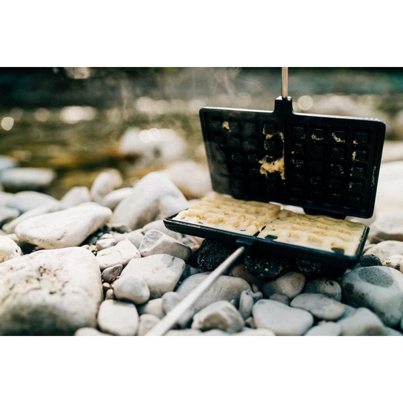 Vaflinę galima naudoti ant atviros ugnies, nesvarbu ar tai jūsų kepsninė ar jaukus laužas. Vienu metu galite iškepti du 9×11 cm vaflius. Dėl ketaus karščio palaikymo savybių vafliai bus iškepti tolygiai. Ilgas vaflinės kotas užtikriną pakankamą atstumą nuo ugnies, kad neapsidegintumėte rankų