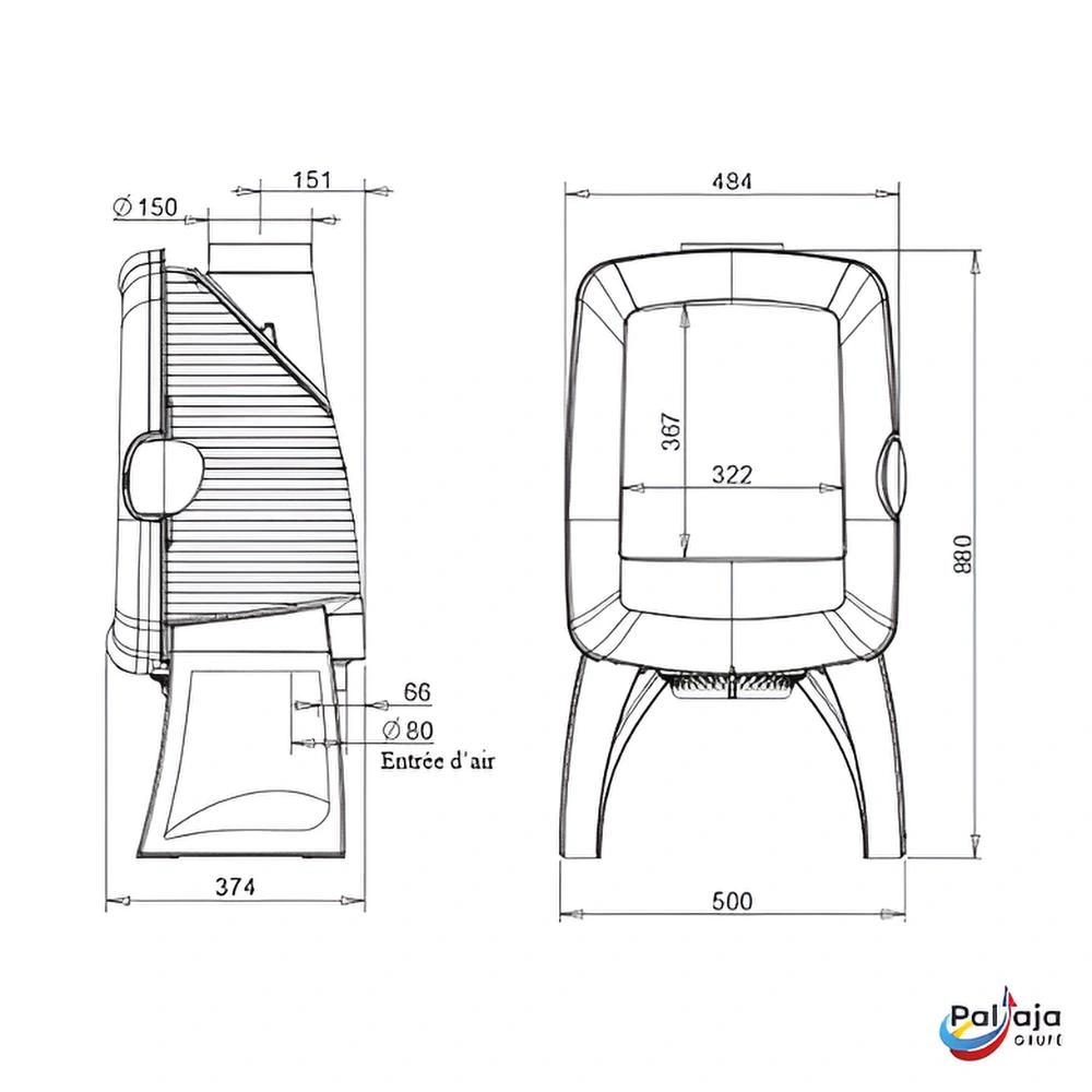 | Dūmtraukio skersmuo | 150 mm |