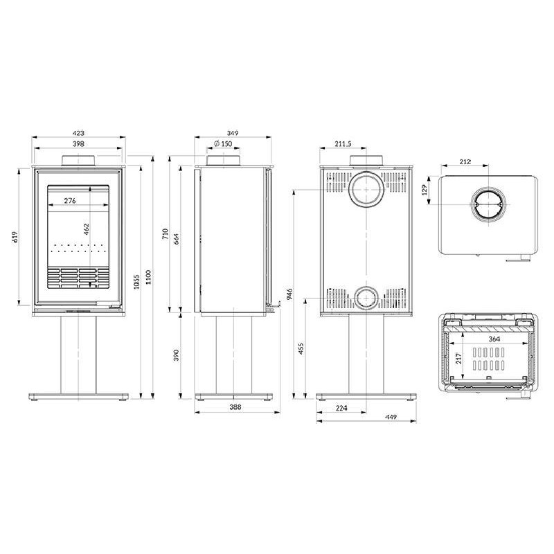 • Integruotas vermikulitinio deflektoriaus modulis – padidina liepsnos temperatūrą ir degimo efektyvumą.
