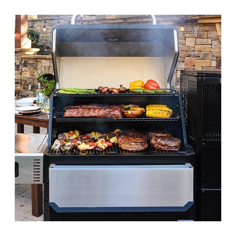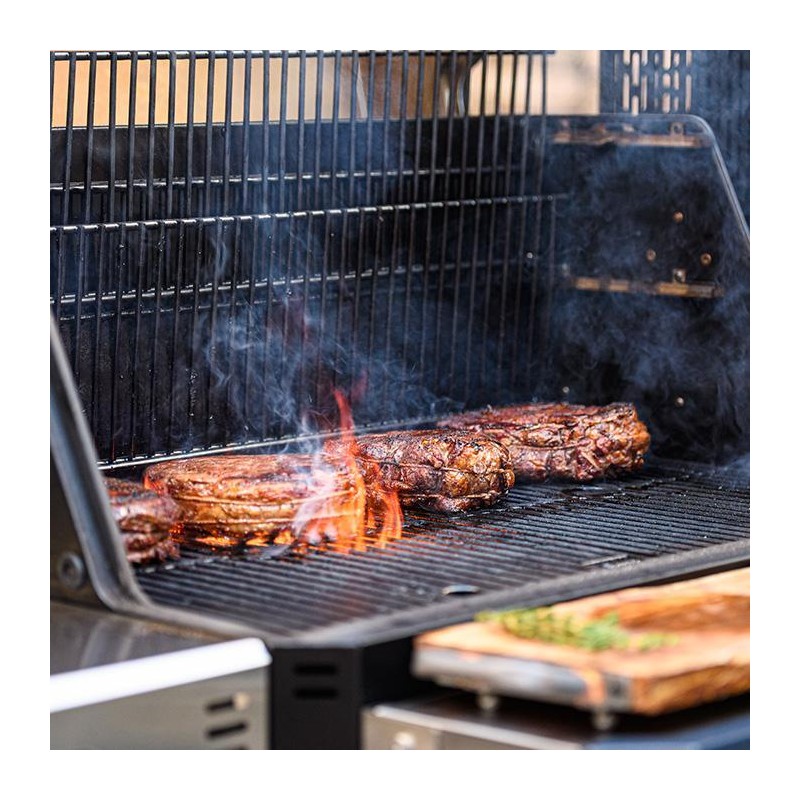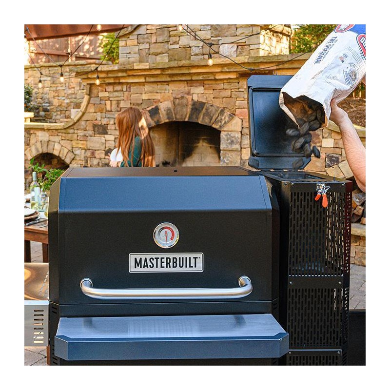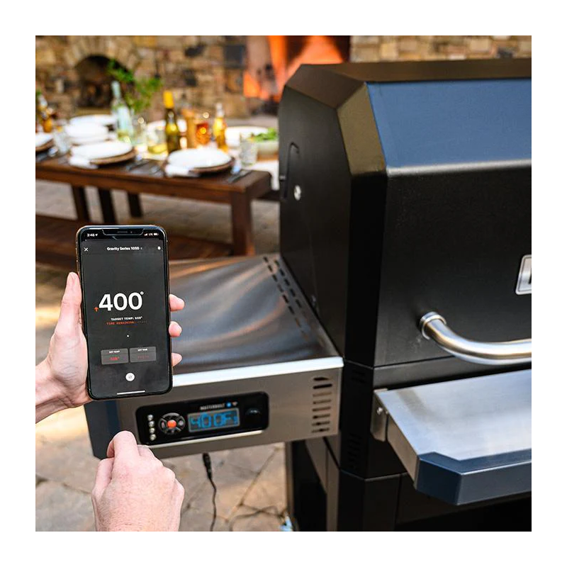 Naujasis Gravity Series 1050 Masterbuild grilis su rūkymo funkcija palengvins jūsų ruošiamo maisto gaminimo procesą ir leis išgauti naujus, nepatirtus skonius. Jo dėka galėsite kepti, rūkyti, skrudinti ar grilinti savo mėgstamiausiu produktus. Išmanioji DigitalFan sąsaja padės preciziškai nustatyti ir palaikyti temperatūrą, o didelė talpa anglims leis užtikrinti degimą net iki 8 valandų. Telefonu valdykite kepsninės temperatūrą tobulai barbekiu patirčiai!