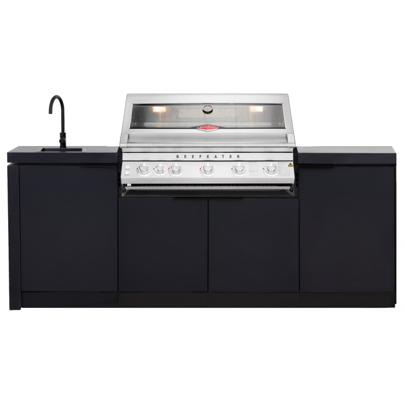 Šis komplektas sujungia grilį, plautuvę ir spinteles į vieną visumą. Tai užtikrina sklandų ir patogų procesą: pasiruošimas, kepimas, serviravimas bei tvarkymasis vyksta vienoje vietoje.