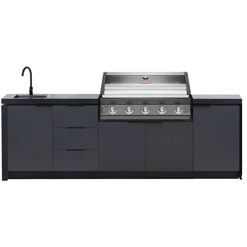 Šis „Premium“ komplektas sujungia profesionalų grilį, kriauklę ir spinteles į vieną estetišką visumą. Tai užtikrina sklandų procesą: pasiruošimas, kepimas, gėrimų patiekimas bei tvarkymasis vyksta vienoje erdvėje.