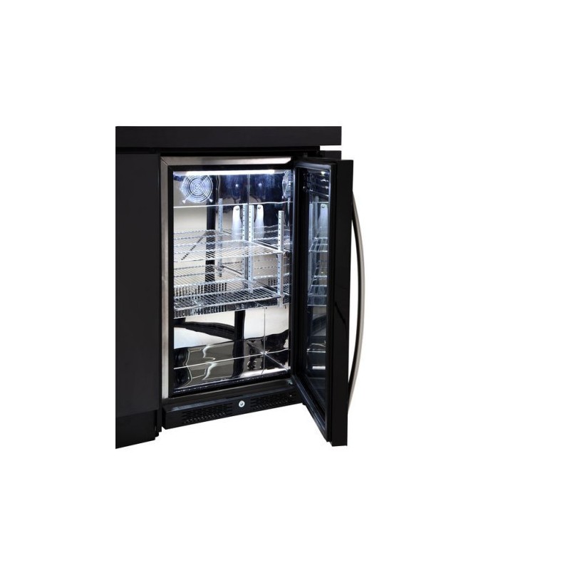 Talpus, lauko sąlygoms pritaikytas šaldytuvas su stiklo durimis užtikrina, kad gėrimai, padažai ar paruošti produktai visada būtų vėsūs ir po ranka.