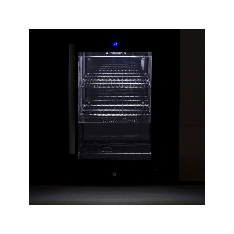 Talpus, lauko sąlygoms pritaikytas šaldytuvas su stiklo durimis užtikrina, kad gėrimai, padažai ar paruošti produktai visada būtų vėsūs ir po ranka.