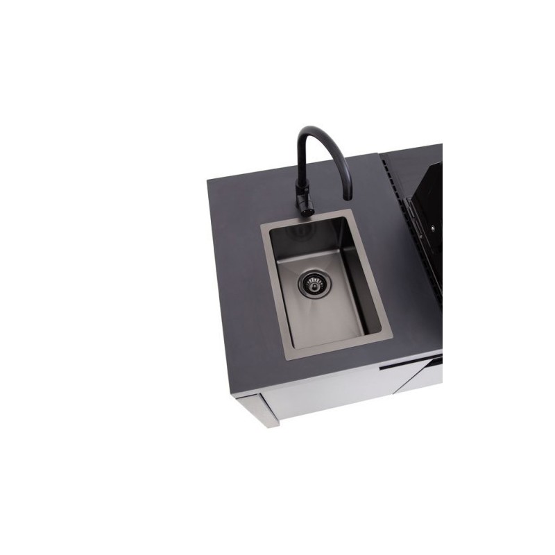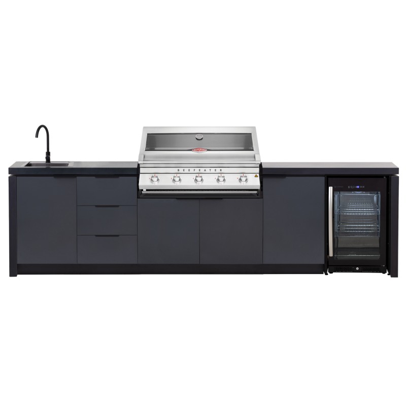 Šis „Premium“ komplektas sujungia profesionalų grilį, kriauklę, šaldytuvą ir spinteles į vieną estetišką visumą. Tai užtikrina sklandų procesą: pasiruošimas, kepimas, gėrimų patiekimas bei tvarkymasis vyksta vienoje erdvėje.