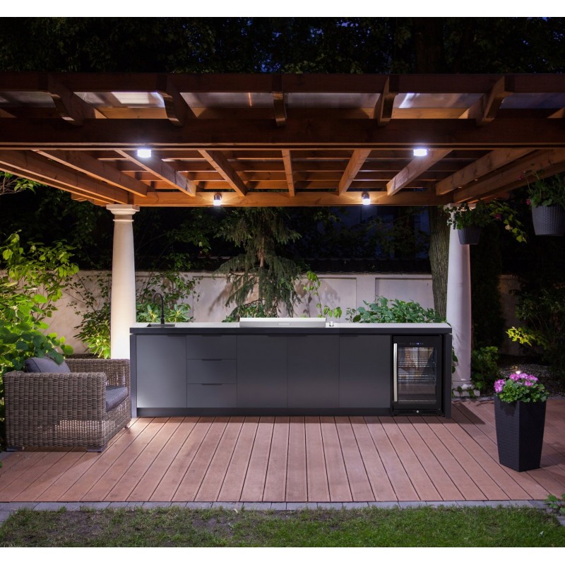 • Komplektacija: Lauko virtuvė: Cabinex Premium serija su integruotu griliu, kriaukle ir 108 l šaldytuvu