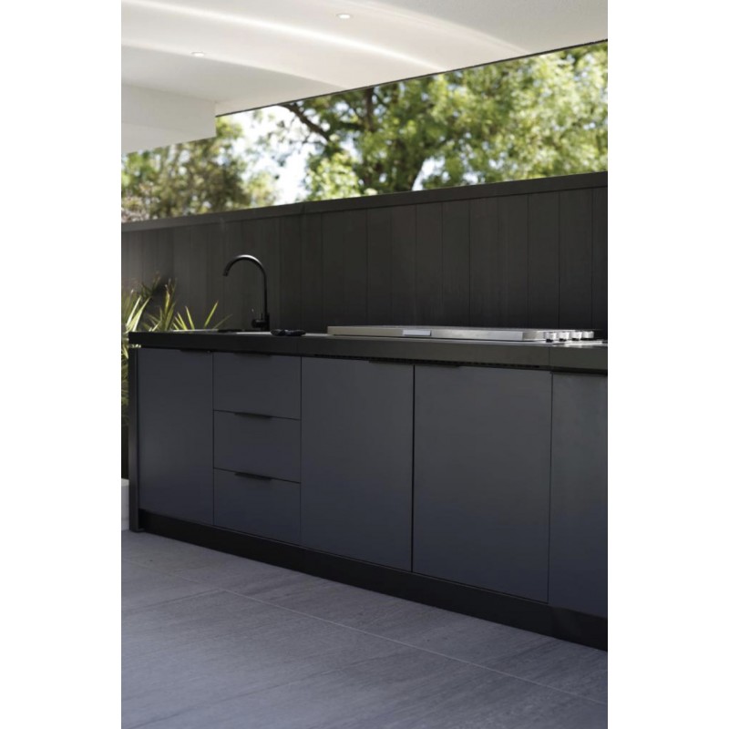 Cabinex lauko virtuvės yra pagamintos naudojant aukščiausios kokybės medžiagas, todėl yra ypač ilgaamžės ir atsparios oro sąlygoms. Patentuotas aliuminio rėmas, vandeniui nepralaidžios plokštės ir lengvai valomas, prabangus stalviršis garantuoja, kad virtuvė atrodys nepriekaištingai ilgus metus. Modulinė sistema leidžia ją lengvai transportuoti ir surinkti.