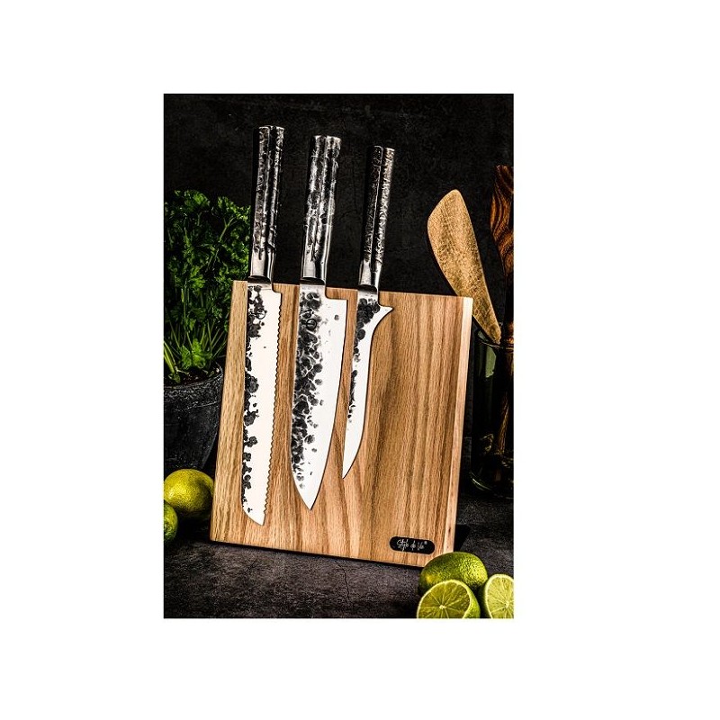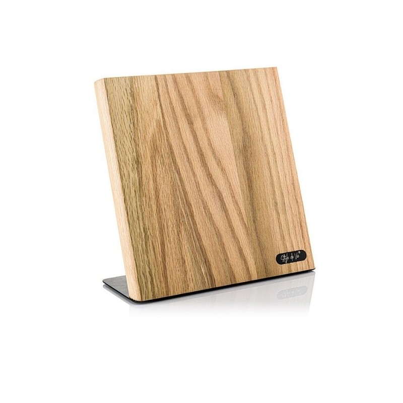 Šis Style de Vie peilių stovas pagamintas iš ąžuolo ir nerūdijančio plieno. Dėl stiprių magnetų ši lenta gali laikyti ir sunkius peilius. Kiekviena lenta yra unikali savo struktūra ir medienos raštais.