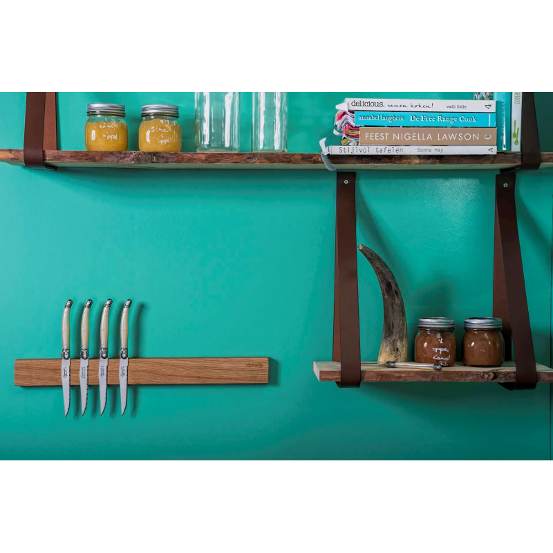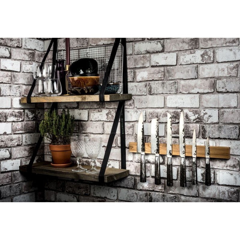 Magnetinis peilių stovas, pagamintas iš ąžuolo medienos, skirtas pakabinti nuo 8 iki 11 peilių. Šis peilių stovas skirtas tvirtinti prie sienos. Jo ilgis yra 50 cm, o aukštis – 5 cm.