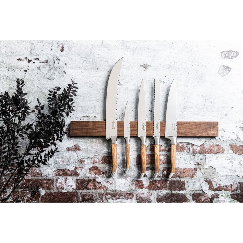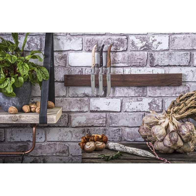 Magnetinis peilių stovas, pagamintas iš riešutmedžio, skirtas pakabinti nuo 8 iki 11 peilių. Šis peilių stovas skirtas tvirtinti prie sienos. Jo ilgis yra 50 cm, o aukštis – 5 cm.