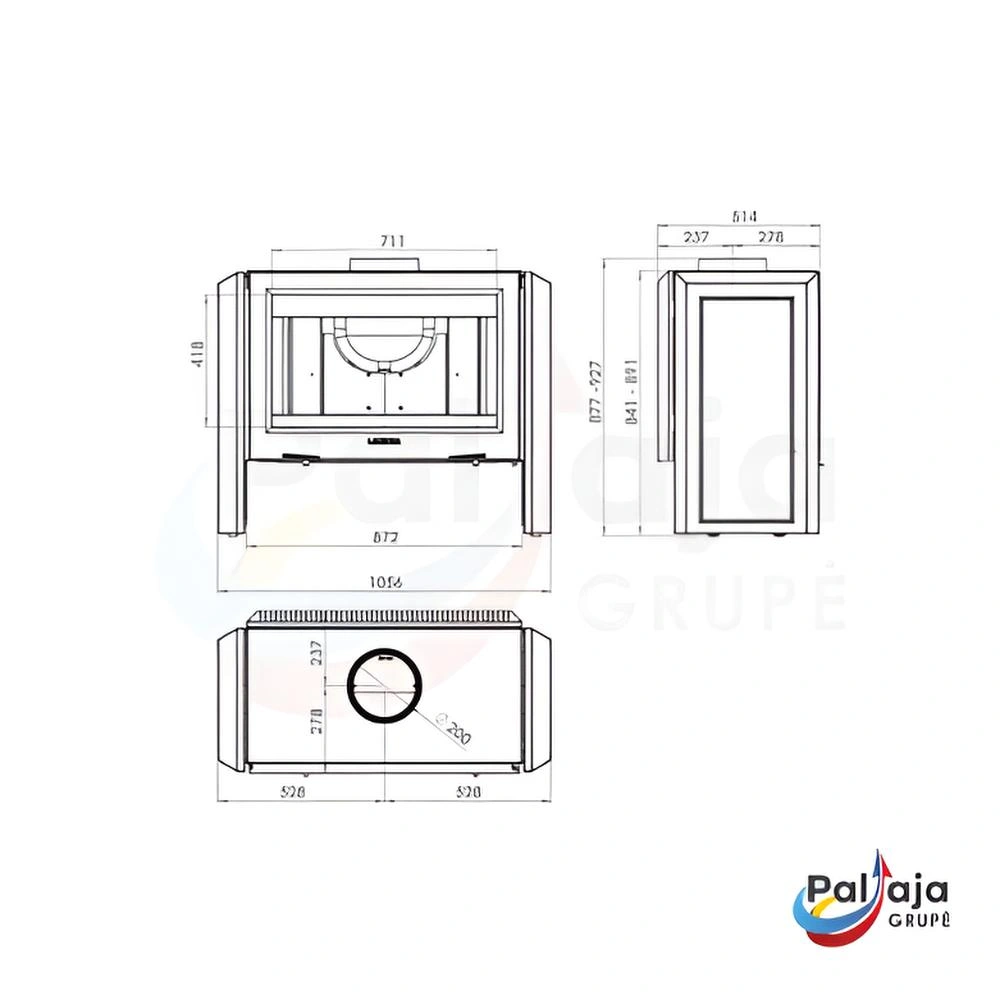 - Krosnelės degimo kameros dydis yra 373x740x430, tai reiškia, kad galima naudoti didelius rąstus (iki 70cm).