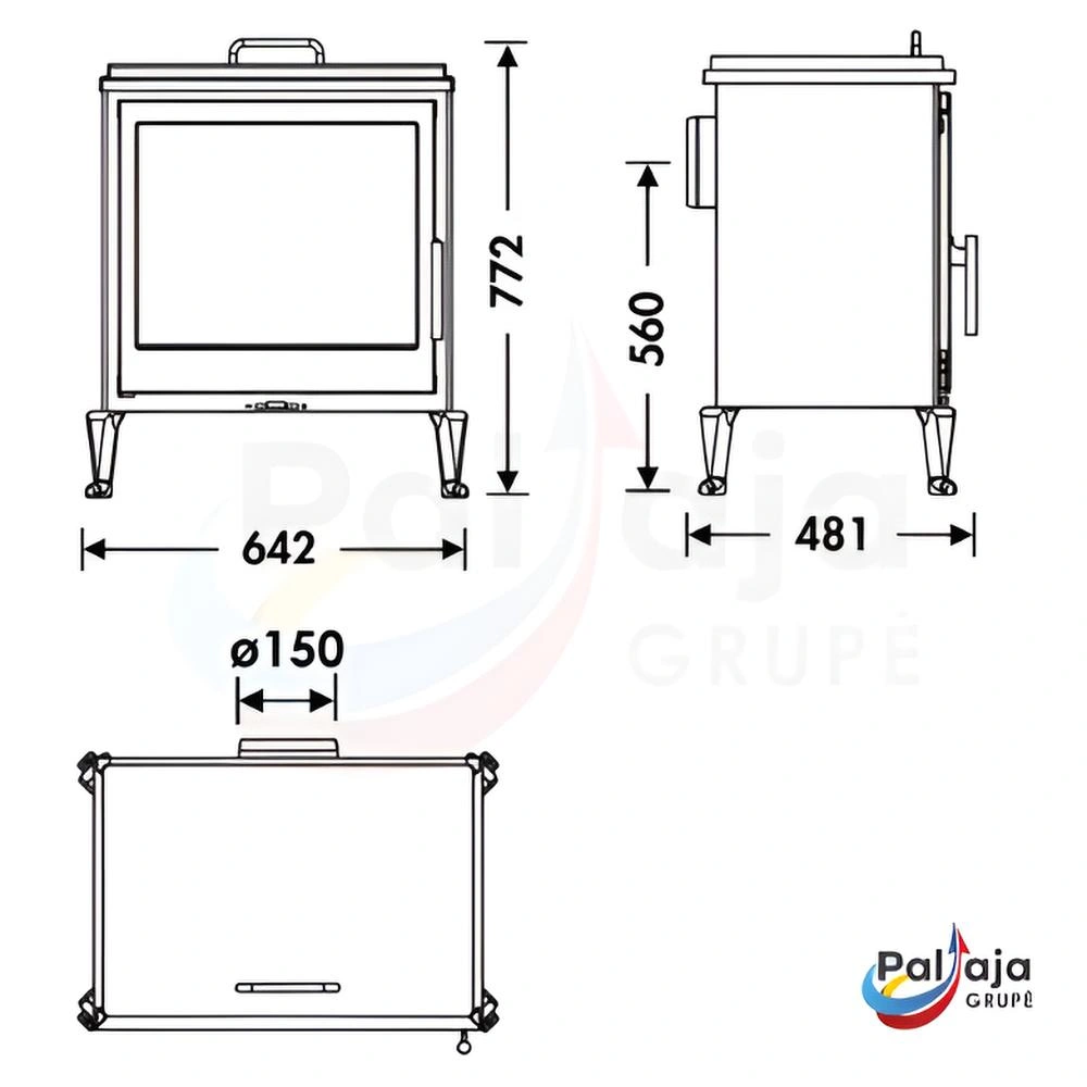 | Dūmtraukis | Ø 150-153 mm Horizontaliai |