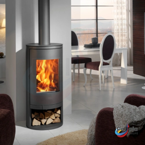 • Malkų laikymo skyrius: Apačioje integruotas skyrius, leidžiantis patogiai laikyti malkas.